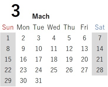 さて、3月の営業日カレンダーをお知らせいたします。